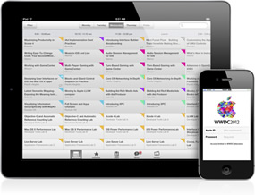 Чтобы предоставить участникам возможность быть в курсе всех намеченных мероприятий на WWDC, Apple выпустила бесплатное приложения для iPhone и iPad, наименованное WWDC 2012. После ввода своего Apple ID пользователь может просматривать план конференции, отмечать для себя наиболее важные события и просматривать карту выставочного центра Moscone West.
