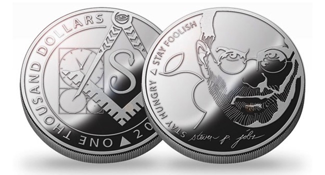 Серия монет получила название iCoin и состоит из четырех видов: медно-никелевая серебряная, с позолотой и золотая. На лицевой стороне монет изображен основатель Apple и логотип компании. Что же касается реверса, то он увенчан масонским символом циркуля и наугольника, между которыми вместо привычной буквы G по какой-то причине расположена буква S. Никаких пояснений по этому вопросу не дается, хотя услышать их было бы любопытно.