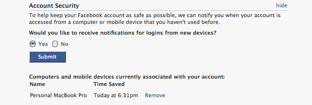 После получения уведомления, вам необходимо будет идентифицировать каждый компьютер, который вы используете, когда входите в профильную страницу на Facebook, и решить, как следует его использовать – в частном порядке или им могут пользоваться все. Вы сможете также увидеть историю регистраций с компьютеров, которые потенциально могут использоваться хакерами.