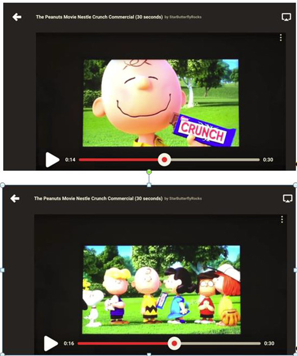 These screenshots of a Crunch commercial found on YouTube Kids were included in the complaint filed today by the Center for Digital Democracy and Campaign for a Commercial Free Childhood. YOUTUBE KIDS
